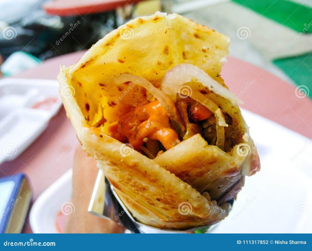 • Paratha (flatbread) rolled with spiced meat or vegetables, often with an egg. A popular street food in Kolkata.